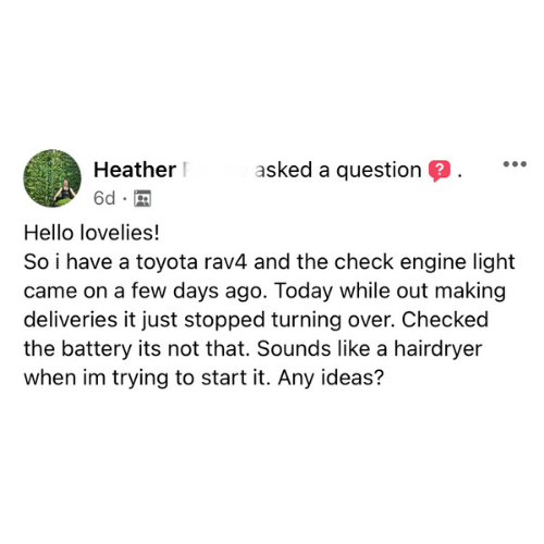 *The Shecanic Facebook group is intended to be a resource for women drivers. In order to keep a space to openly talk about car questions, triumphs, and woes, this group is open only to women or those who identify as a woman.